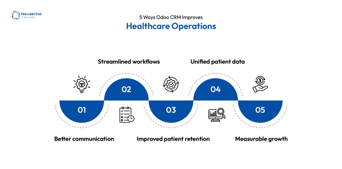 A CRM for healthcare in the US reshapes operations by connecting communication, data, and workflows across the patient journey. A healthcare CRM system, such as Odoo moves hospitals from reactive processes to coordinated, insight-driven action.