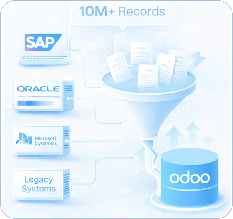 We have successfully migrated 10M+ records from 20+ legacy systems, including SAP, Oracle, and Microsoft Dynamics.