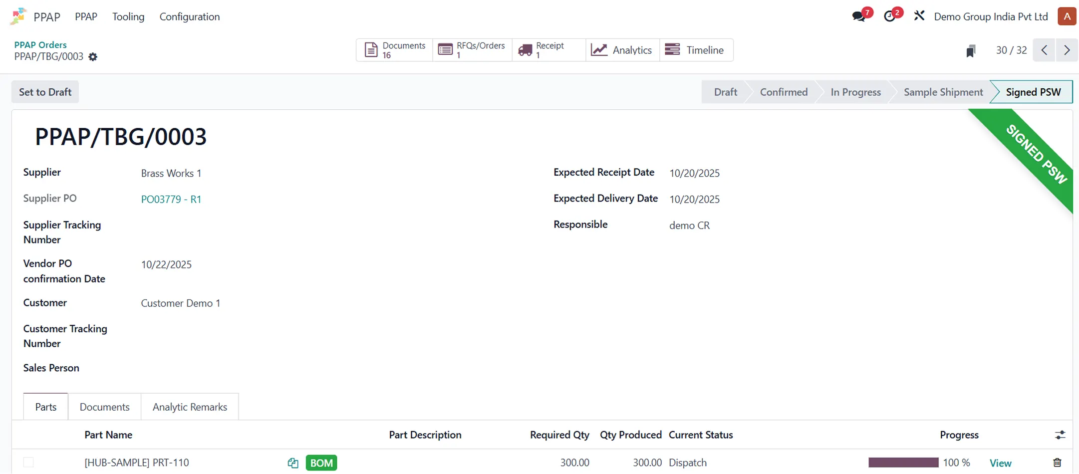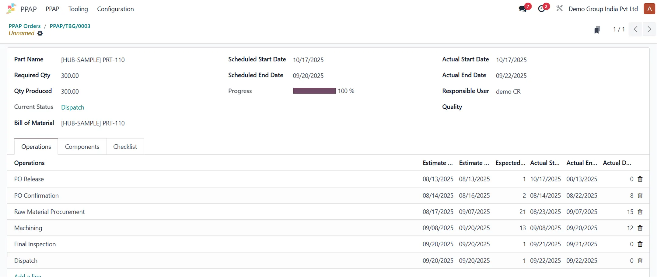 As an Odoo Gold Partner, Navabrind embeds PPAP directly into Odoo Manufacturing, Quality, and Inventory modules, centralizing all 18 PPAP elements—from DFMEA to MSA results—for unified compliance tracking.