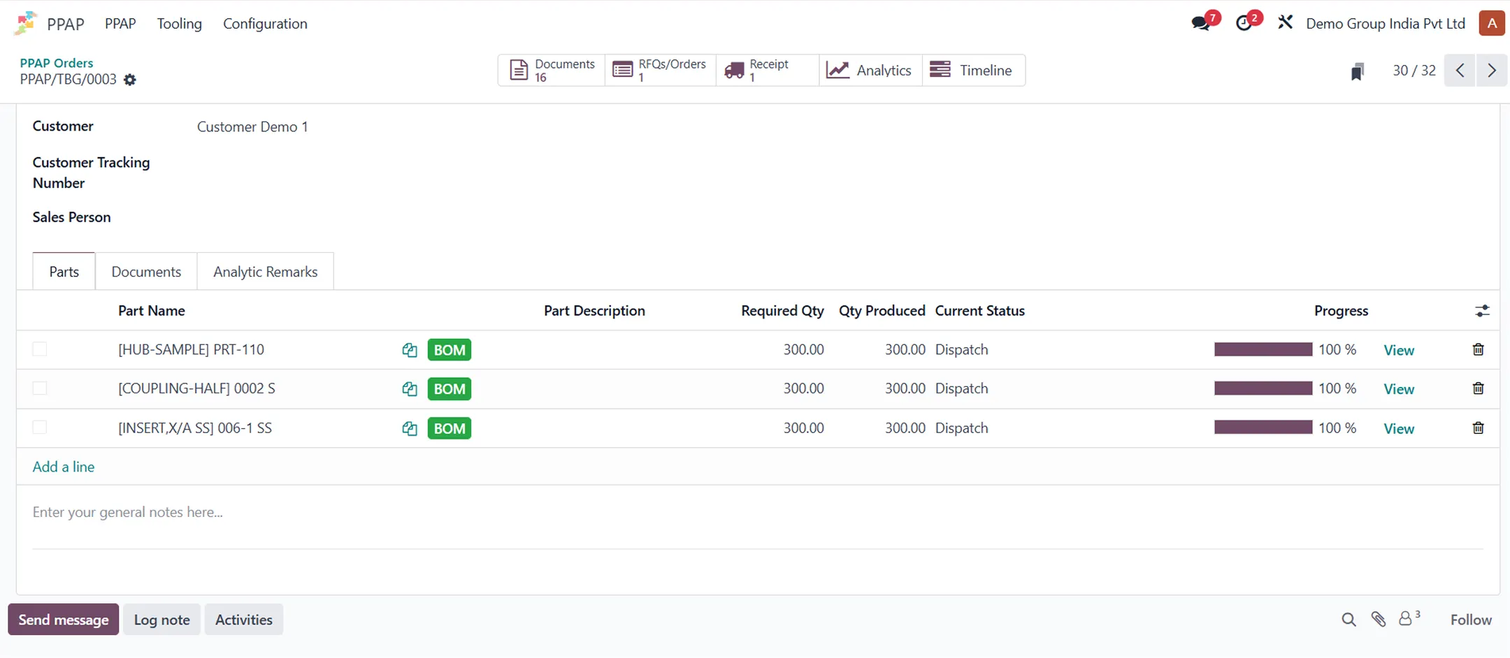 Navabrind IT Solutions ensures accurate manufacturing with PPAP through its Odoo-integrated module, which automates the 18 required elements, from DFMEA/PFMEA risk analysis to dimensional results and material tests, flagging deviations in real time to prevent defects before full production.